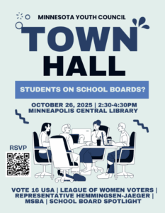 Students on School Boards: A Conversation Minneapolis Central Library – Sunday, October 26th 2:30-4:30pm